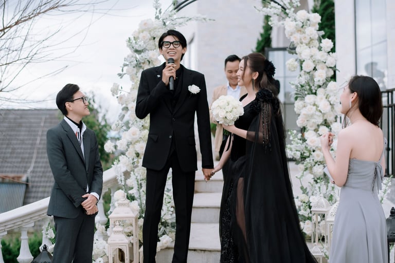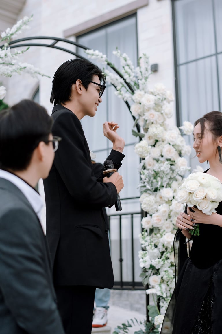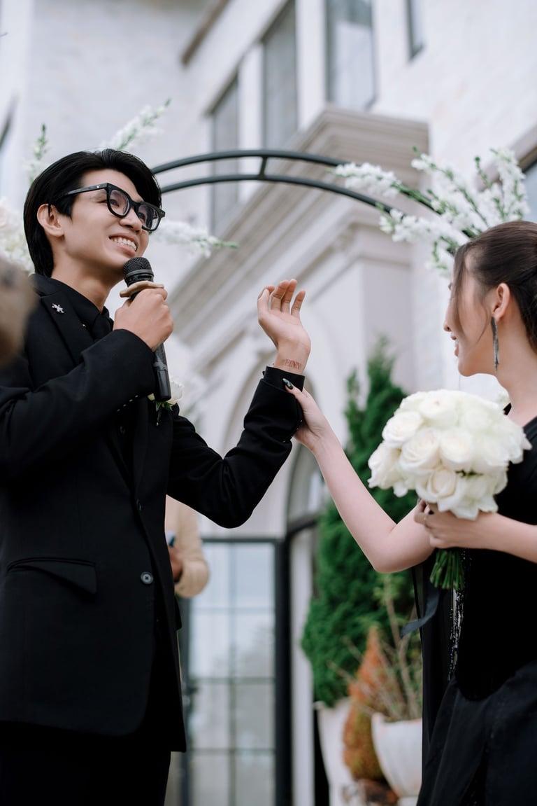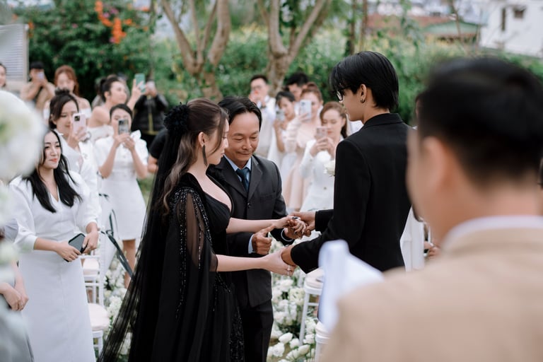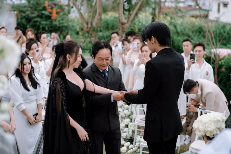 Tôi gặp Khanh và Duyen lần đầu tiên một tháng trước đám cưới của họ. Họ có một tầm nhìn tổng thể cho ngày trọng đại của mình, đó là sự kết hợp giữa truyền thống và hiện đại, và họ muốn những bức ảnh cưới phản ánh điều đó. Rõ ràng là giữa hai người họ có rất nhiều tình yêu thương, và tôi rất thích được làm quen với họ và gia đình đáng yêu của họ.