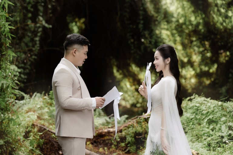 Tôi gặp Vân và Nguyên lần đầu tiên một tháng trước đám cưới của họ. Họ có một tầm nhìn tổng thể cho ngày trọng đại của mình, đó là sự kết hợp giữa truyền thống và hiện đại, và họ muốn những bức ảnh cưới phản ánh điều đó. Rõ ràng là giữa hai người họ có rất nhiều tình yêu thương, và tôi rất thích được làm quen với họ và gia đình đáng yêu của họ.